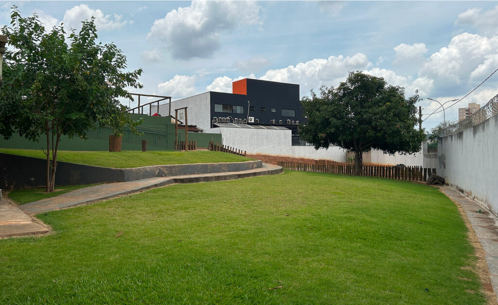 Salas organizadas por idade, área verde, playground, sala de informática e refeitório acompanhado por nutricionista.